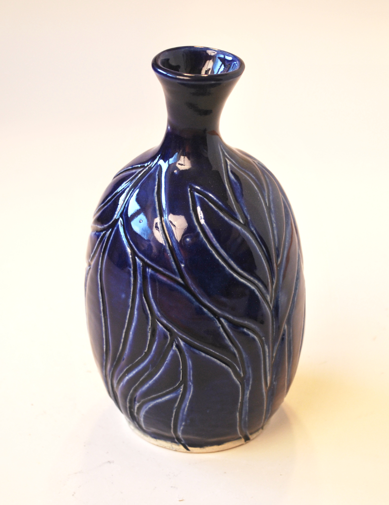 Bud Vase: Carved Cobalt Blue