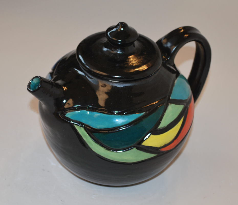 Carved and Painted Teapot with Black Background