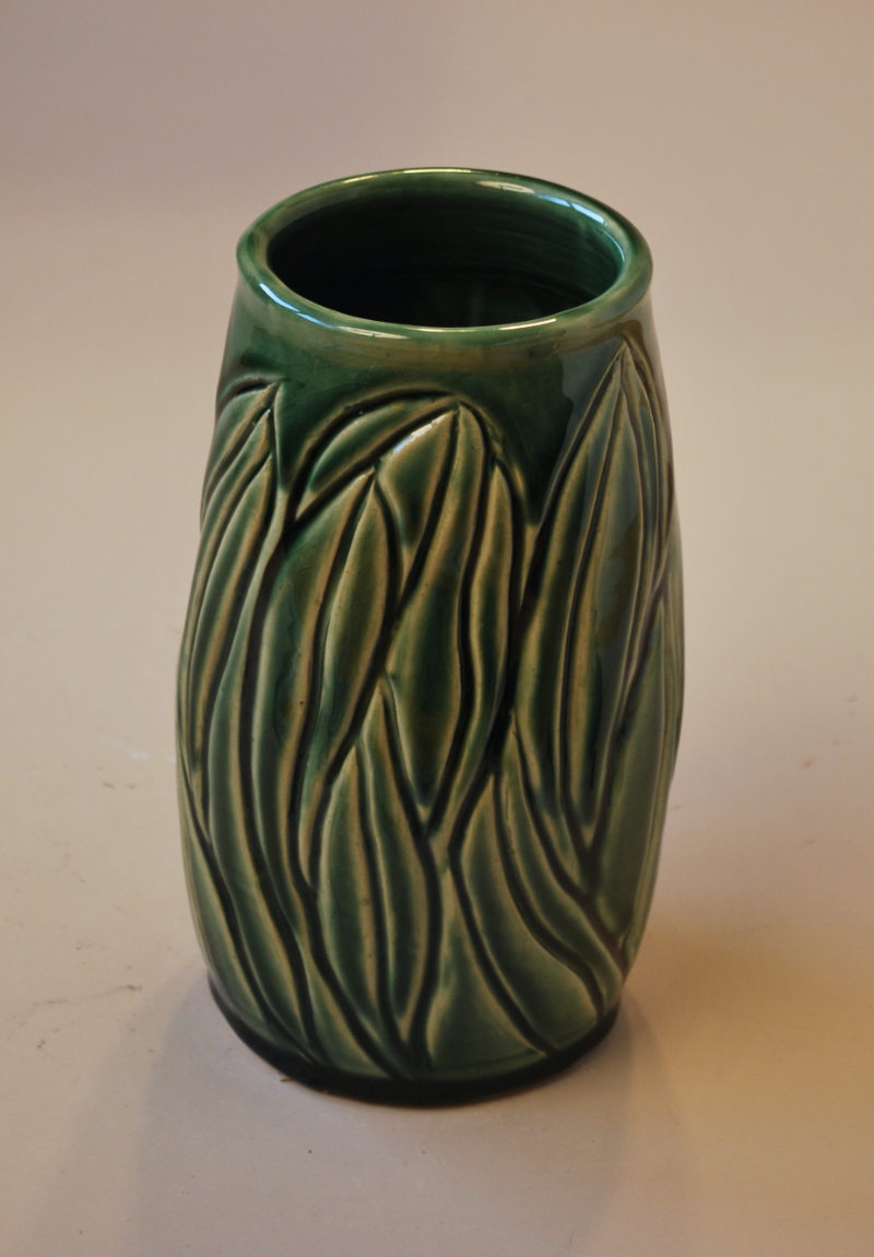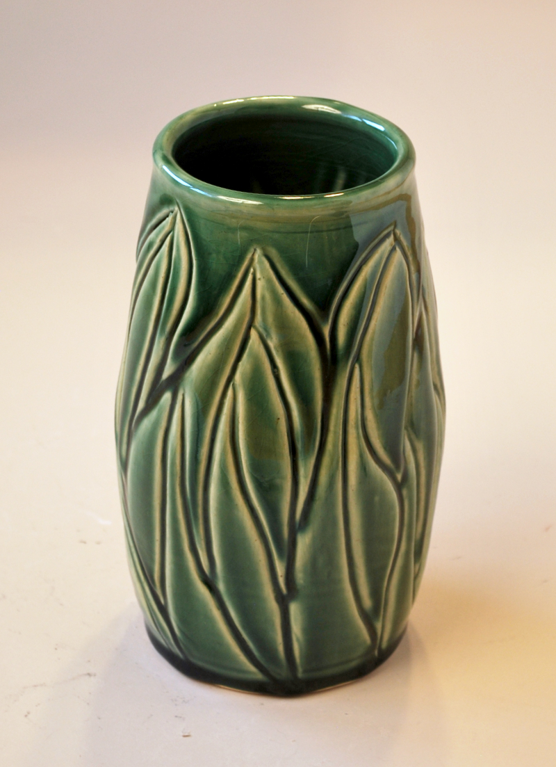 This beautiful carved green vase is unique.